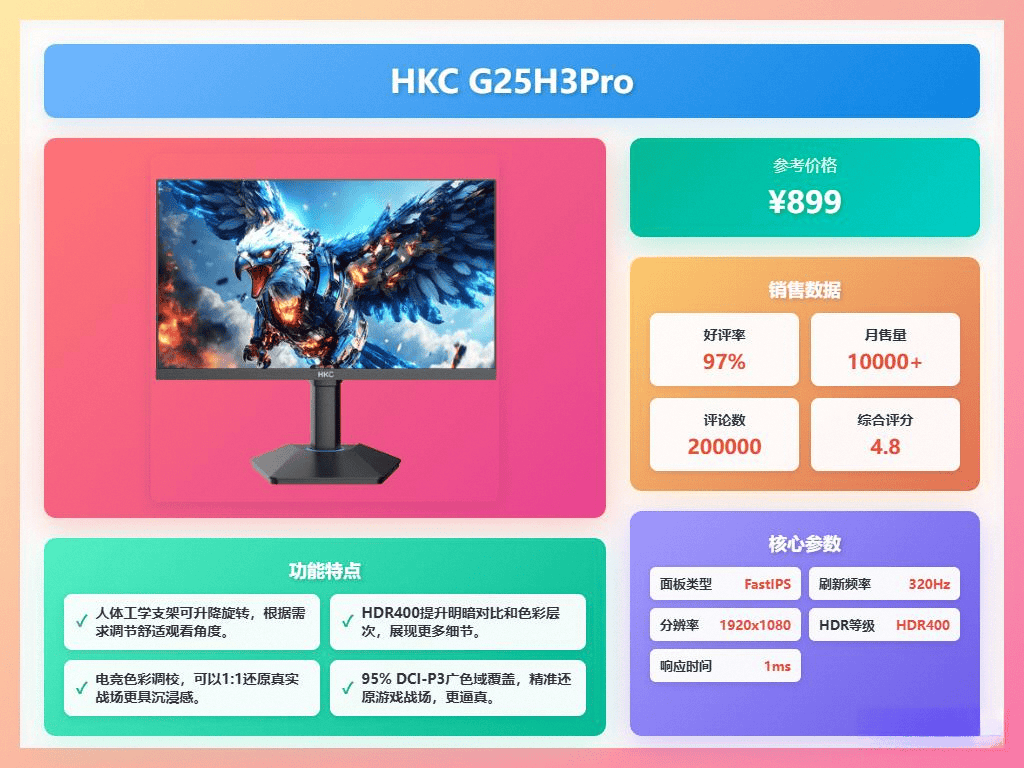 这款显示器拥有超高的320Hz刷新率,能带来极其流畅的游戏体验,打游戏那叫一个丝滑!画面撕裂、卡顿?不存在的!对于追求极致速度的玩家来说,这绝对是加分项。