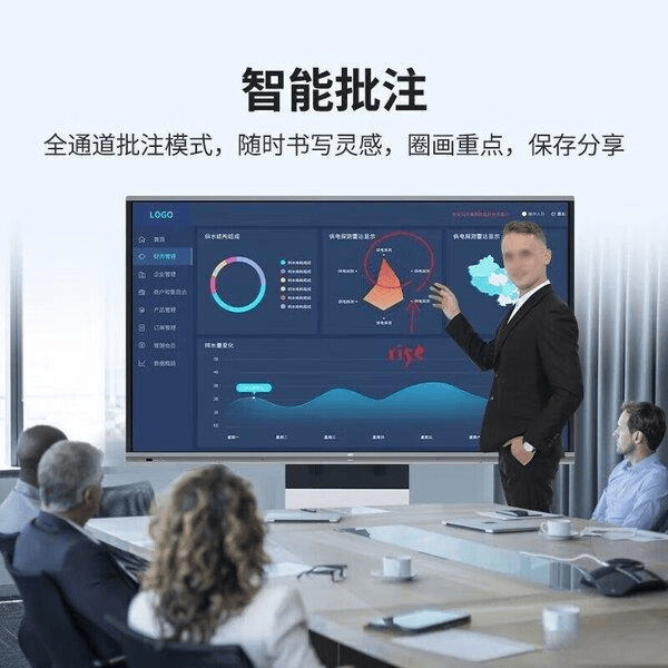 触摸式电子白板:内置高灵敏度触摸屏幕,支持多点触控。这让会议享创意、即时批注变得轻松无比,参与者可以直接在屏幕上书写、绘图,实时传达想法,增加互动性。