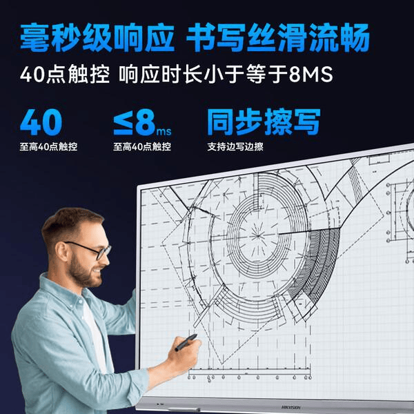 智能白板功能:支持多点红外触控,识别高达40点的触控操作,提供流畅的书写和绘图体验,适合团队头脑风暴或方案讨论,提升互动性与参与感。